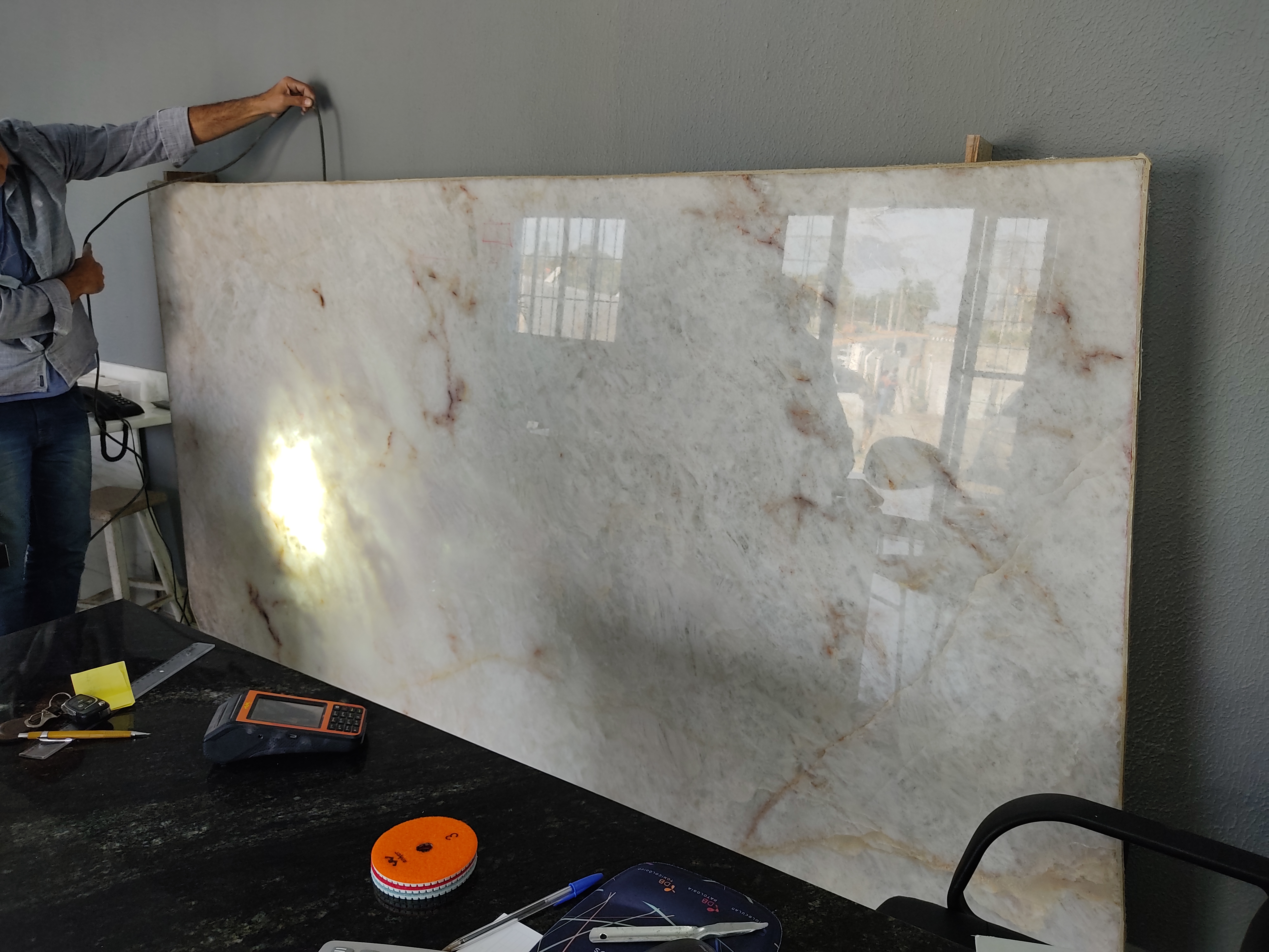 Uma tendência atual, encontrada na loja, é o quartzito Cristallo, um material exótico e translúcido, com veios em cores delicadas, que possibilita criar um diferencial em ambientes internos, em objetos retroiluminados. Considerada uma pedra sofisticada, de luxo, o Cristallo pode conter cristais preciosos como o cristal de quartzo rosa. De alta resistência, pode ser utilizado em área externa e até em pequenas peças decorativas.